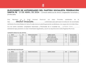• Información para la presentación de listas de pre candidatos del Partido Socialista de Santa Fe