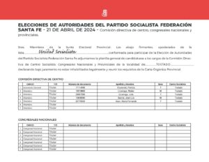 • Información para la presentación de listas de pre candidatos del Partido Socialista de Santa Fe