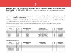 • Información para la presentación de listas de pre candidatos del Partido Socialista de Santa Fe